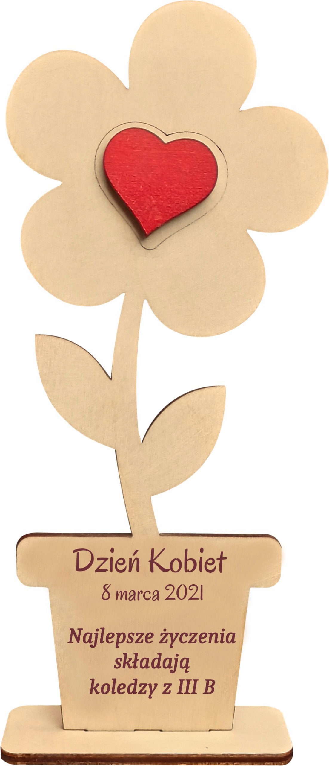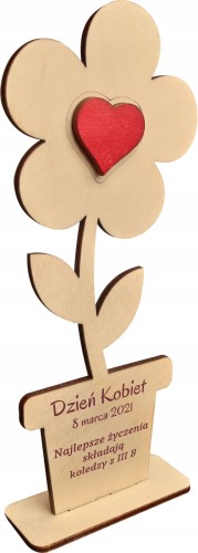 W związku z Państwa dużym zainteresowaniem oferujemy prezent na dzień kobiet. Cudowny drewniany kwiatek z Twoim dowolnym grawerem!