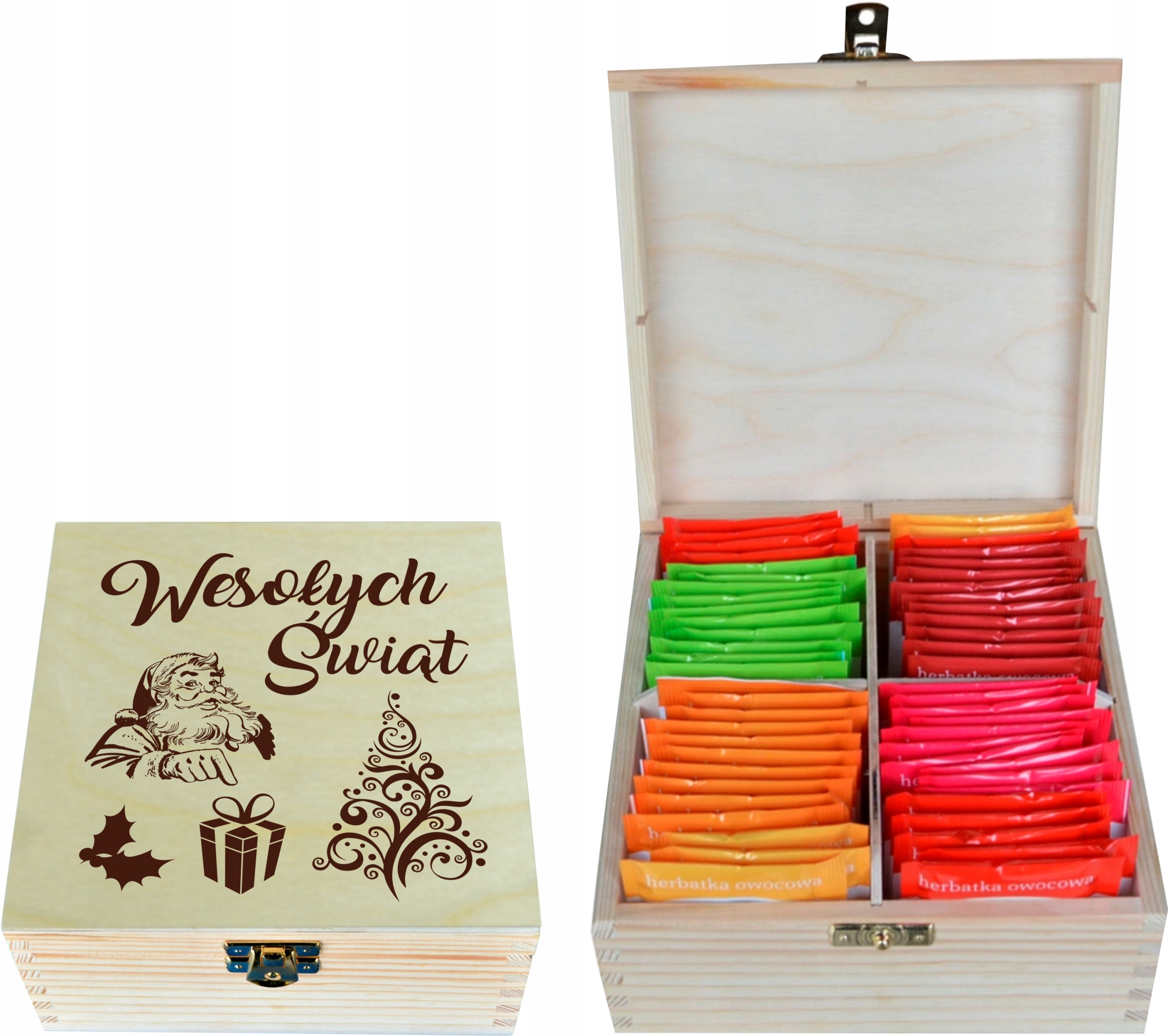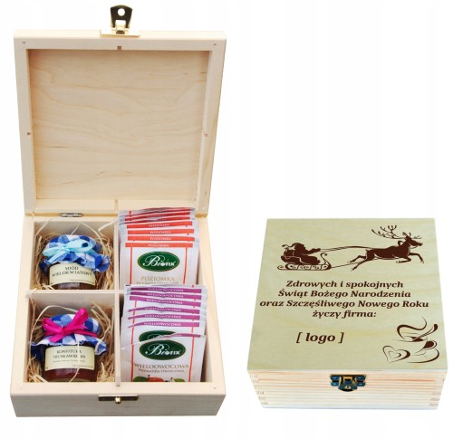 CUDOWNE, DREWNIANE PUDEŁKO NA HERBATĘ Z 4 PRZEGRÓDKAMI! PREZENT DLA TWOICH KONTRAHENTÓW, DLA TWOICH PRACOWNIKÓW - NA ŚWIĘTA 2023