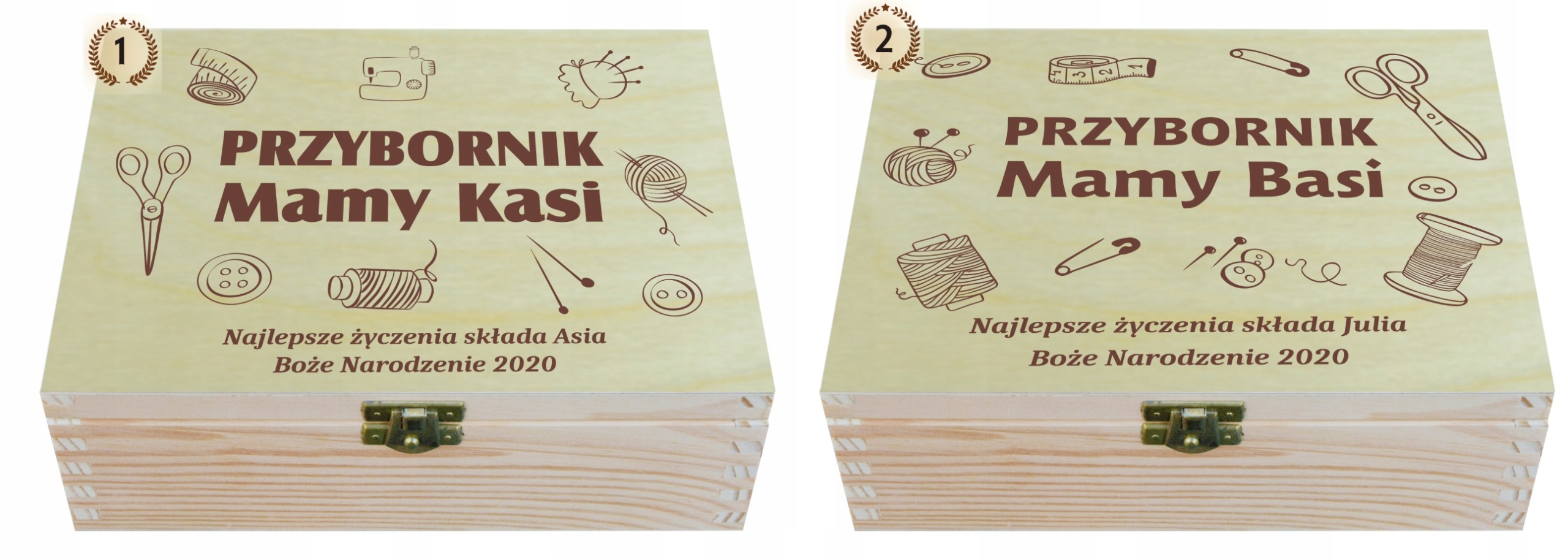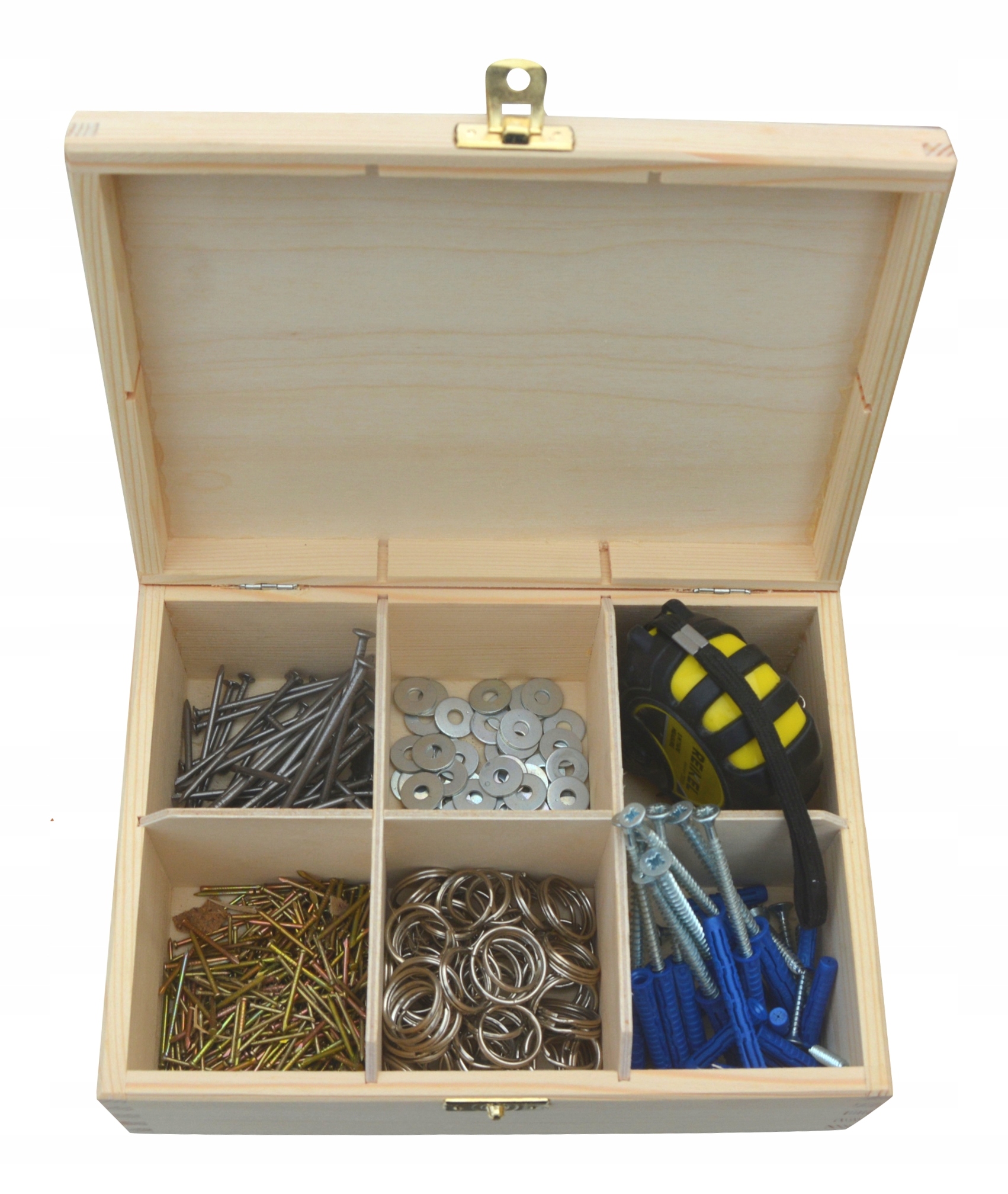 Pudełko pełni rolę niezbędnika, w którym można pomieścić przeróżne drobne rzeczy typu: nici, igły, akcesoria do szycia, kosmetyki, kolczyki, biżuterię. Dla taty pudełko posłuży jako przybornik na gwoździe, śrubki, kołki i inne drobne rzeczy.