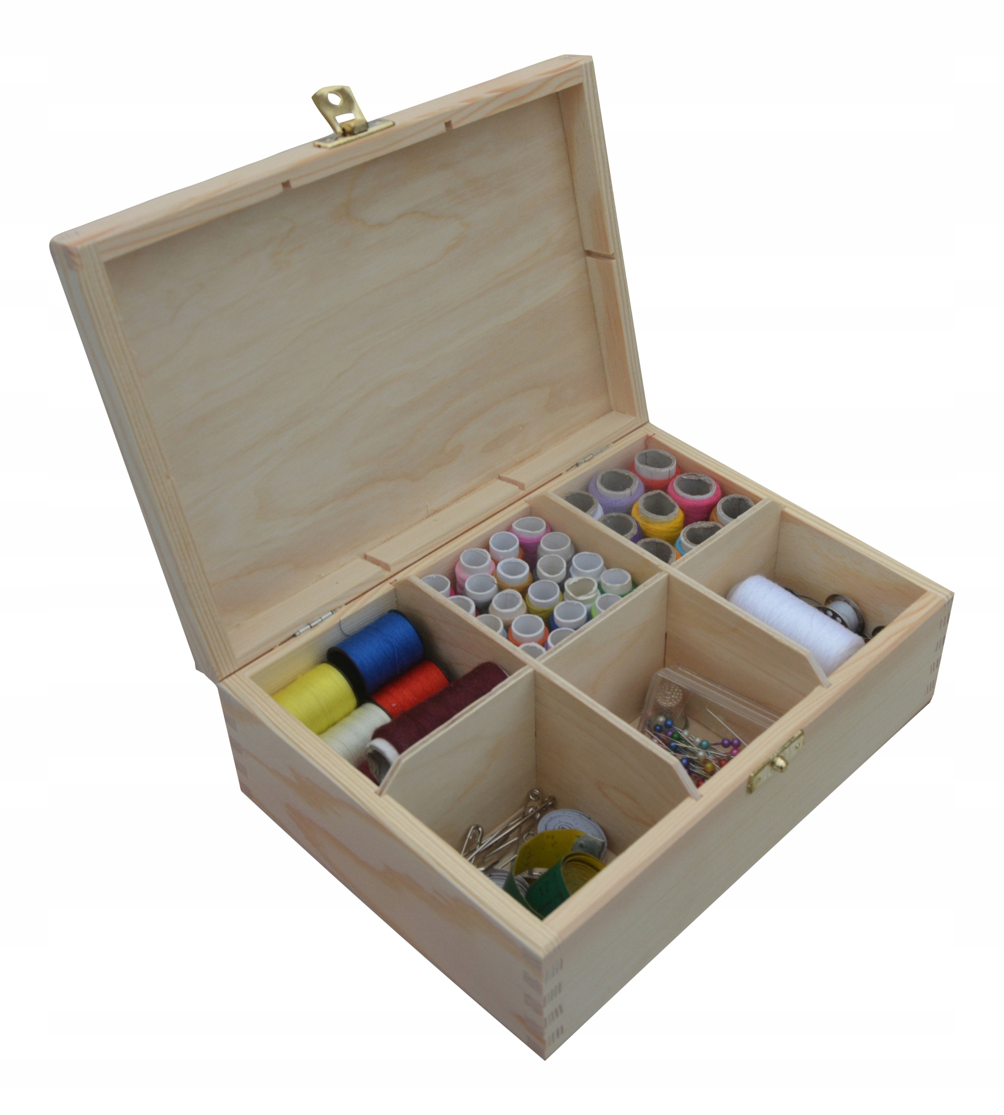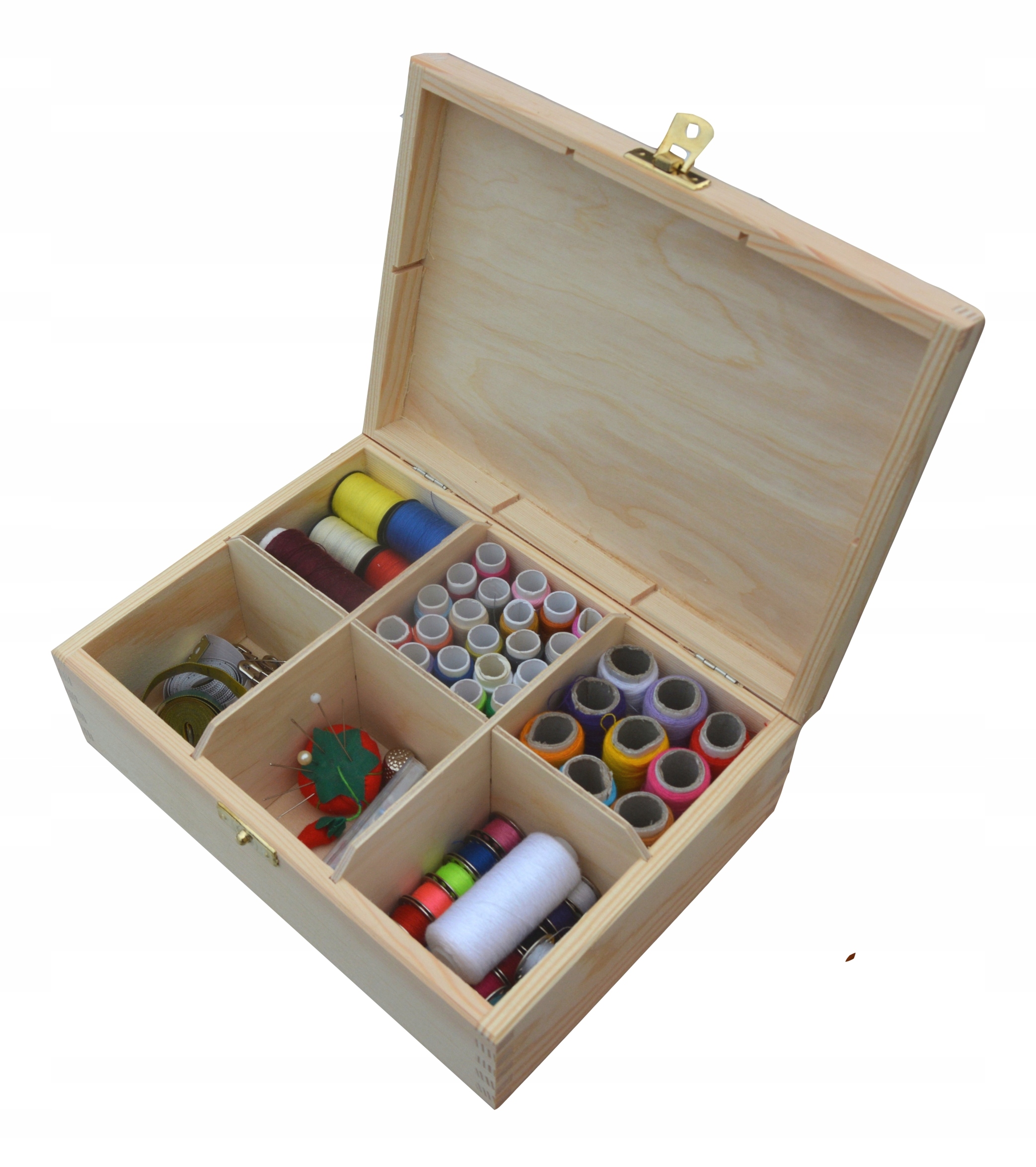 PIĘKNE, DREWNIANE PUDEŁKO NA NICI, IGŁY,KOSMETYKI, KOLCZYKI LUB ŚRUBKI. PRZYBORNIK Z 6 PRZEGRÓDKAMI SWIĘTA 2023!