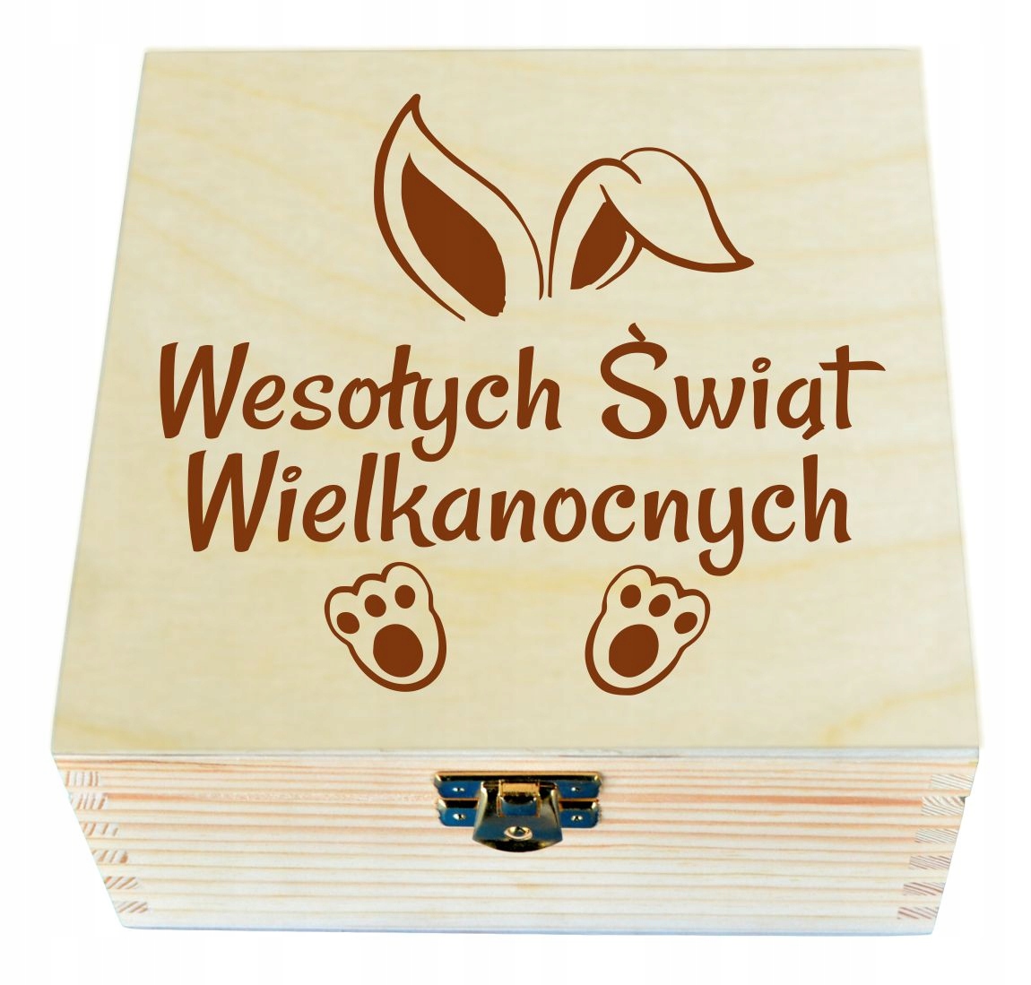 - Stylowe, złote zapięcie, dzięki któremu pudełko prezent na Święta Wielkanocne prezentuje się naprawdę cudownie.