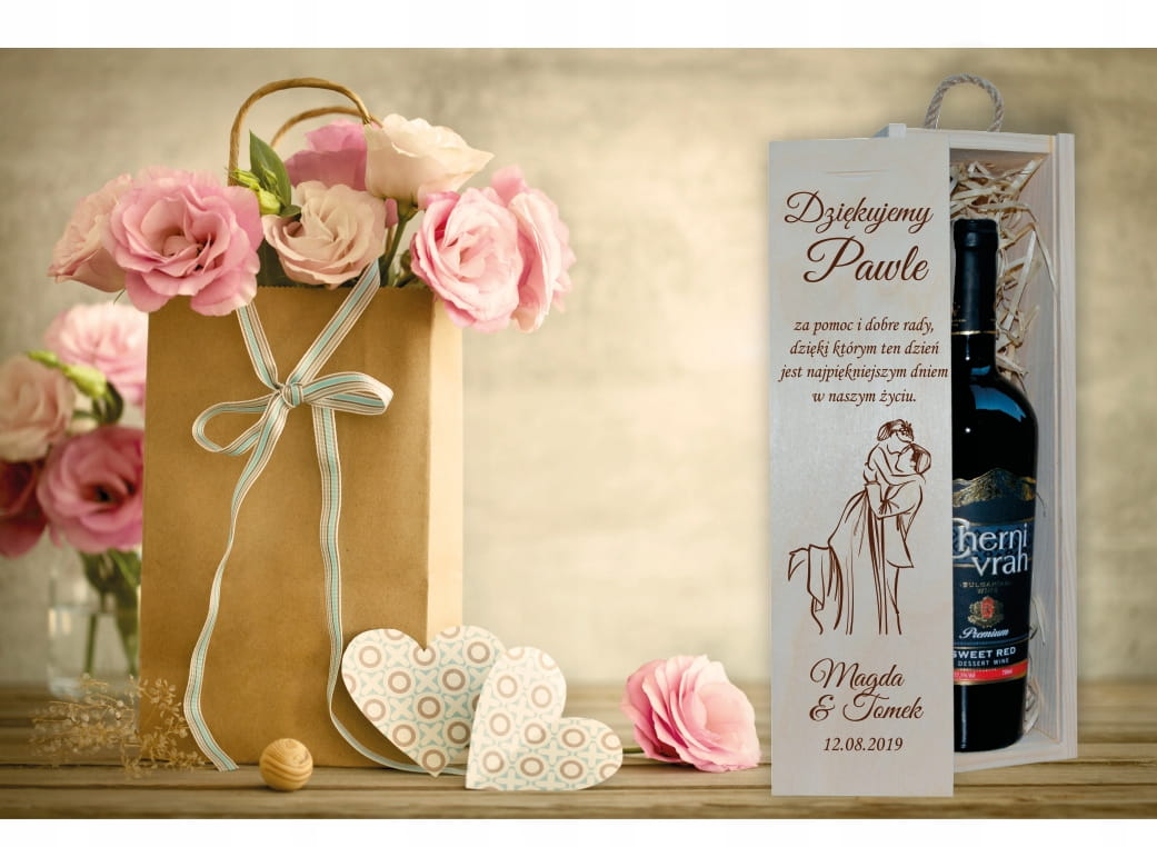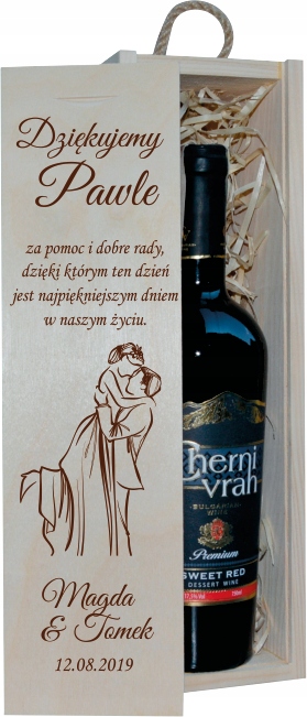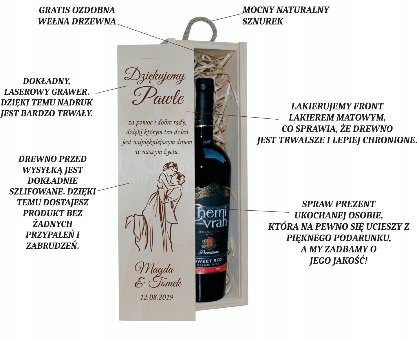 PUDEŁKO NA WINO ALKOHOL GRAWER -PODZIĘKOWANIE DLA ŚWIADKÓW