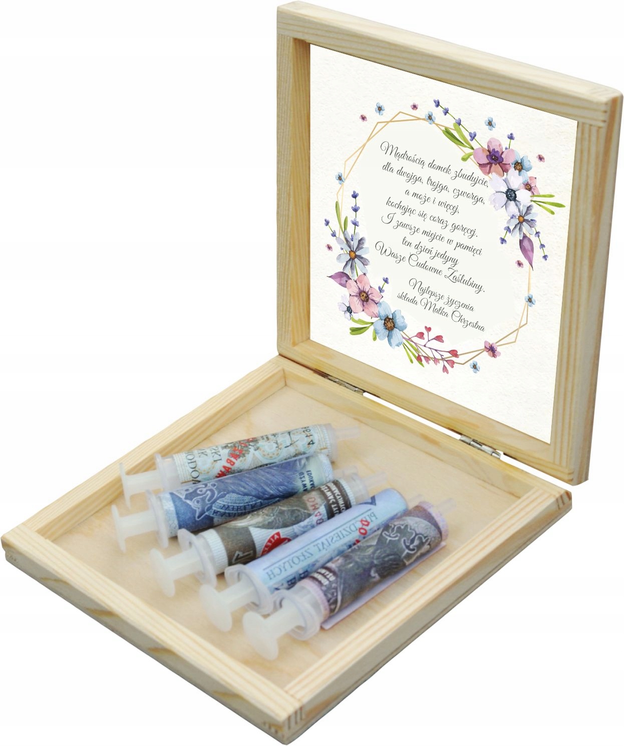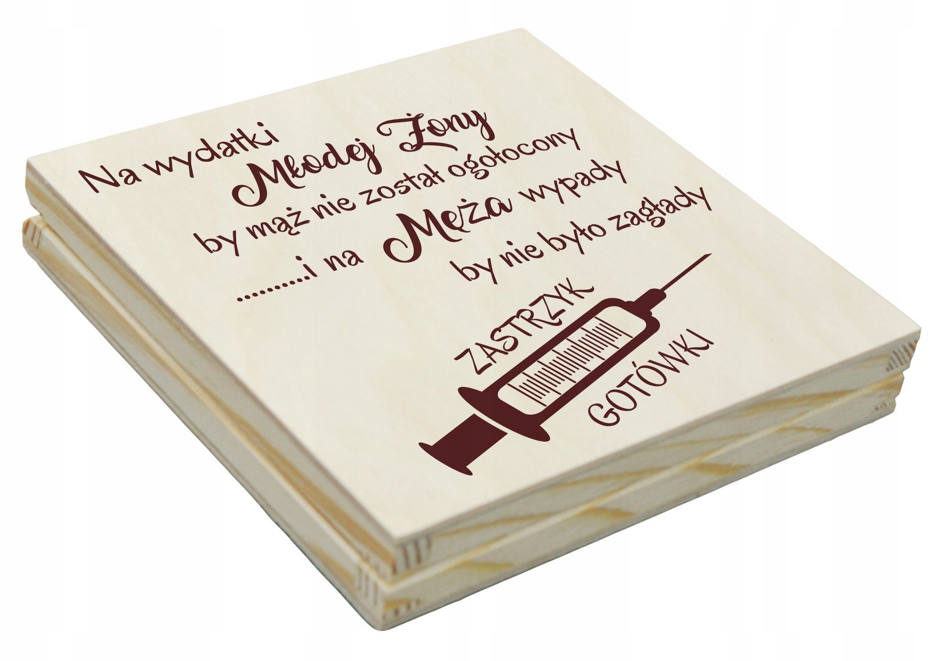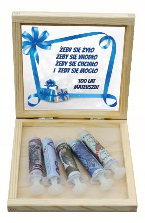 To personalizowane, grawerowane pudełko ze strzykawkami, które sprawdzi się doskonale. Pełni także praktyczną rolę - jako schowek na drobiazgi. Na pewno zaskoczysz tym młoda parę!