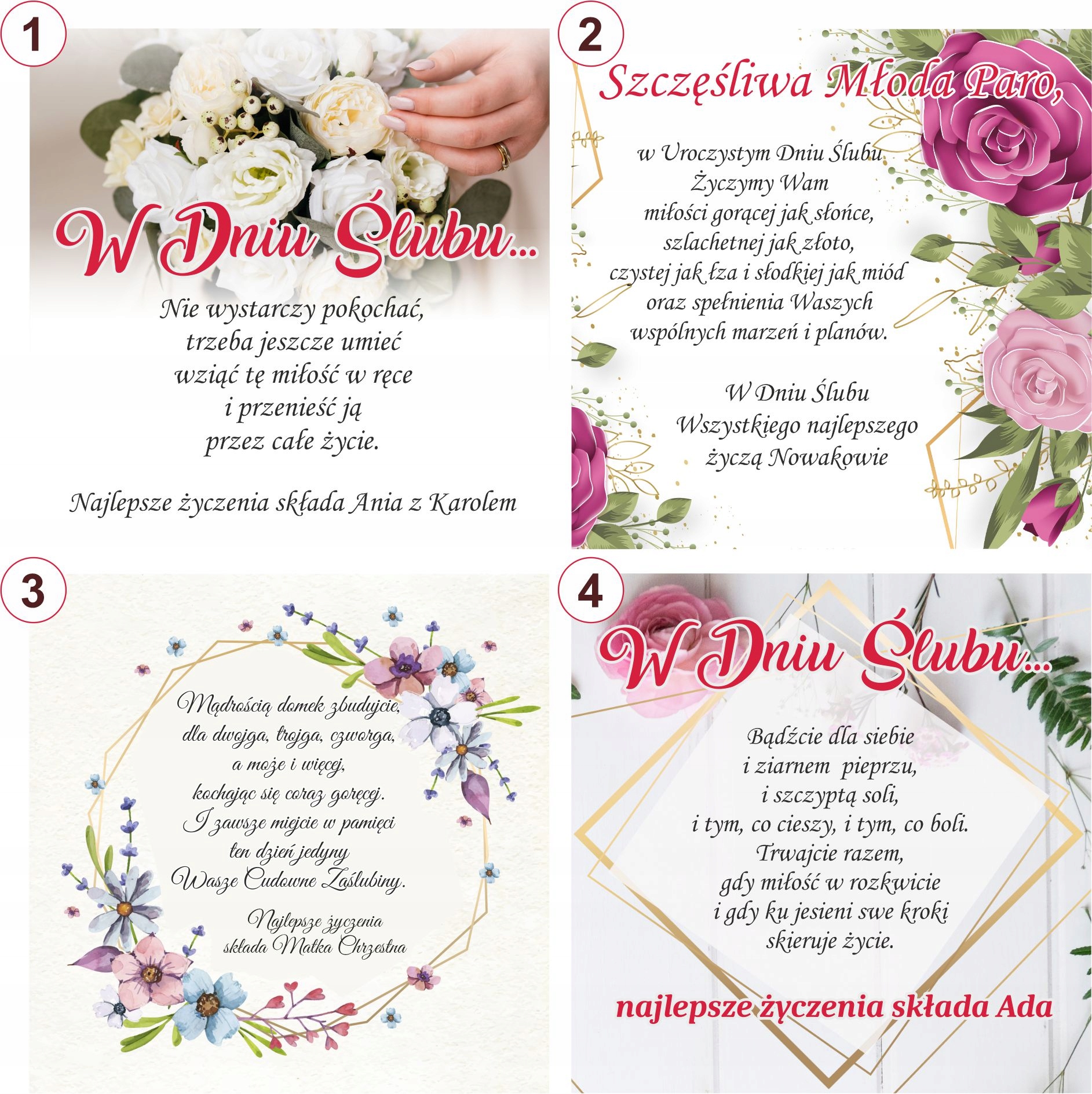 - podaj dane - data ślubu, kto wręcza upominek