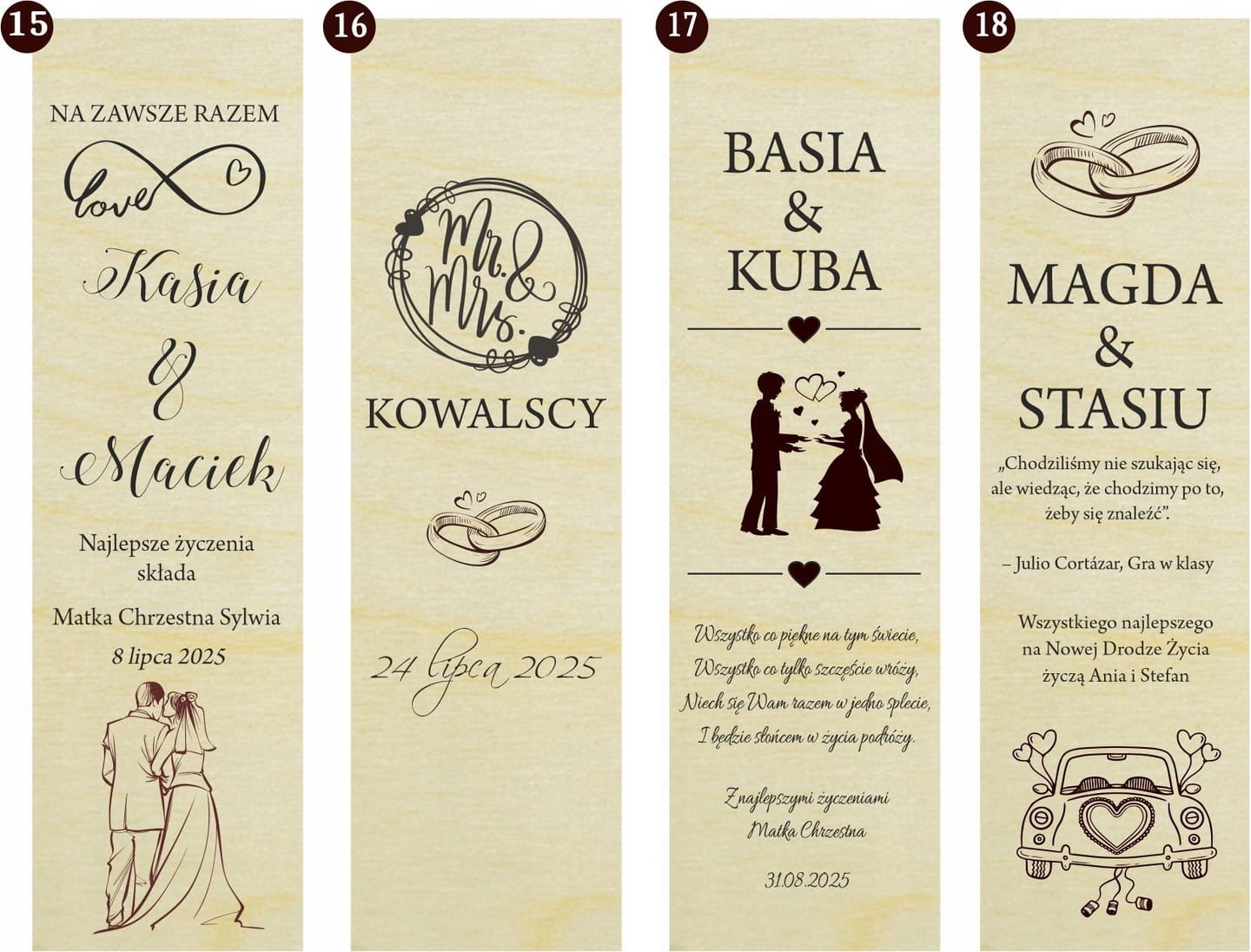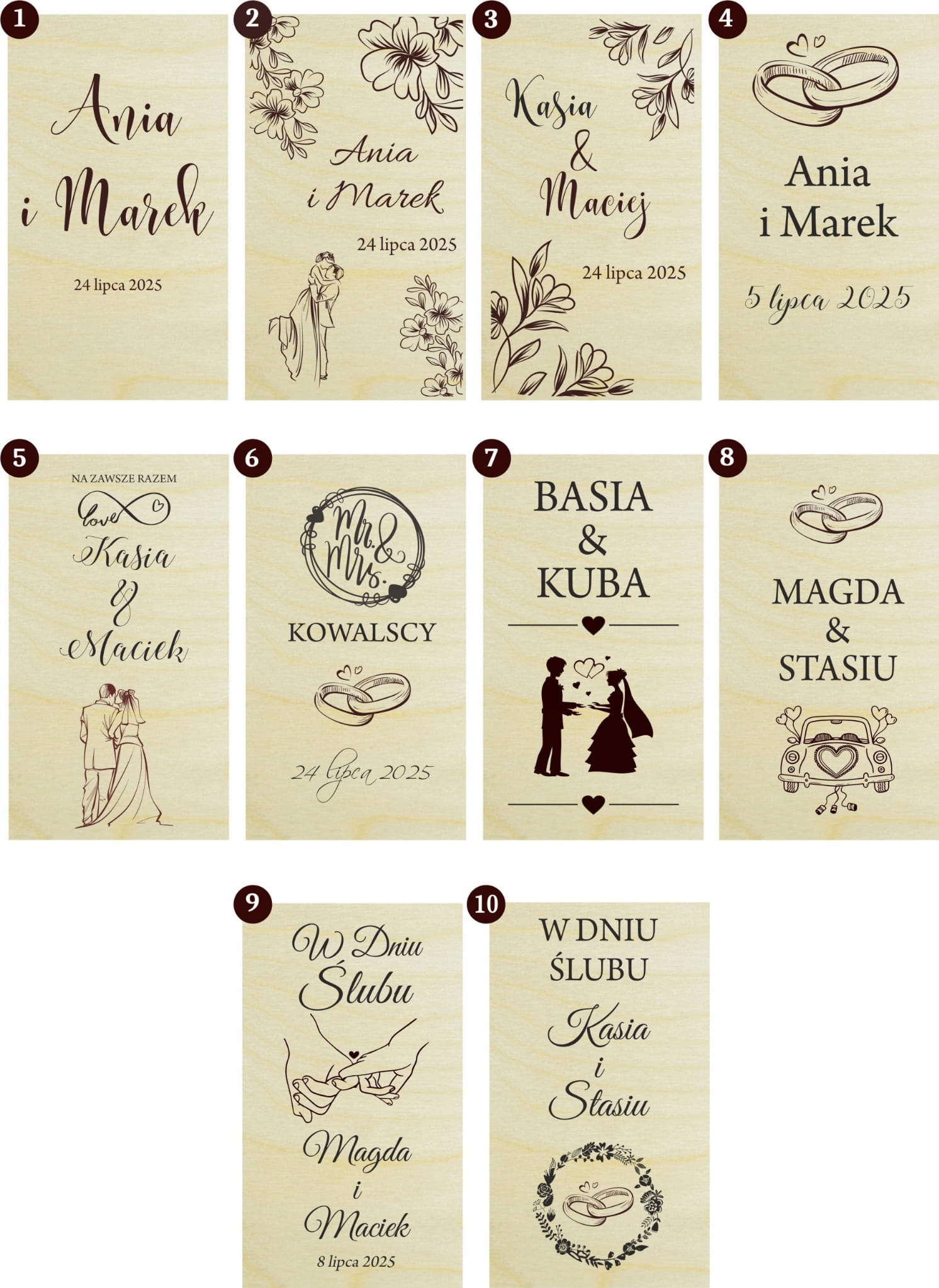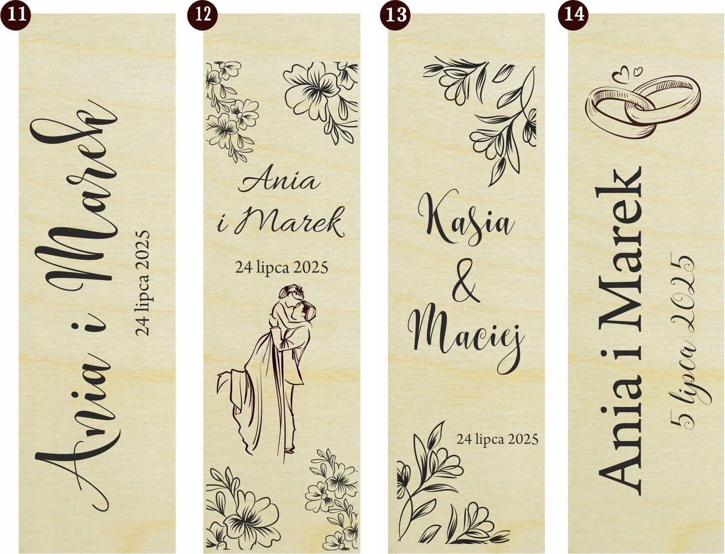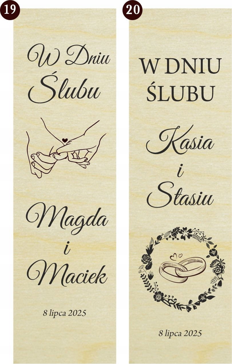 Możemy przygotować wcześniej projekt do wglądu, grawerujemy zdjęcia nowożeńców, ale plik źródłowy musi być dobrej jakości. Dowolna modyfikacja w stworzeniu wzorów.