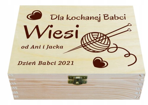 Pudełko pełni rolę niezbędnika, w którym można pomieścić przeróżne drobne rzeczy typu: nici, igły, akcesoria do szycia, kosmetyki, kolczyki, biżuterię. Dla dziadka pudełko posłuży jako przybornik na gwoździe, śrubki, kołki i inne drobne rzeczy.
