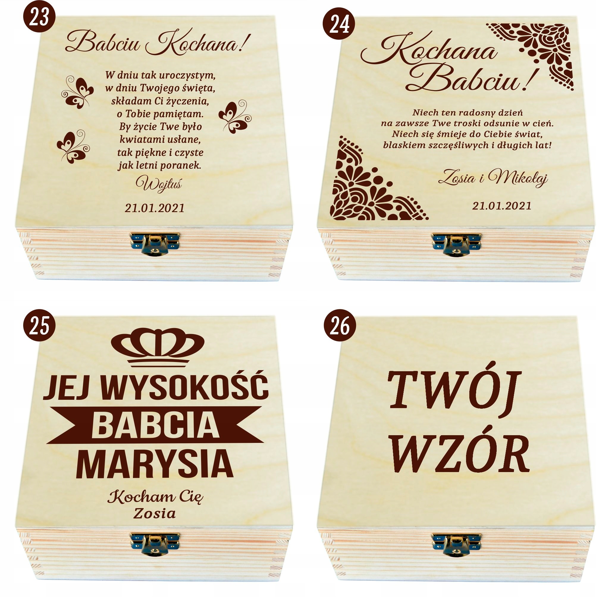 Produkt pozostaje bez żadnych przypaleń. Nadaje to skrzynce piękny, elegancki wygląd. Naprawdę elegancki prezent na dzień babci i dziadka.
