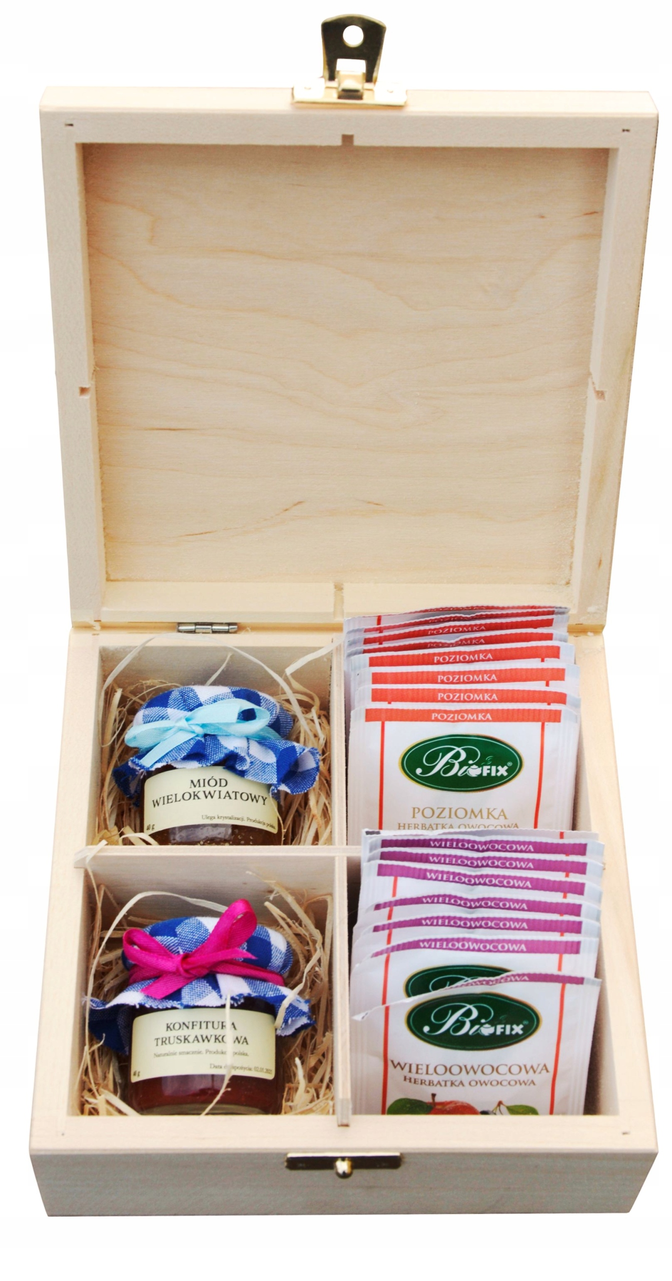 Pudełko na herbatę wykonane jest z solidnego drzewa brzozowego