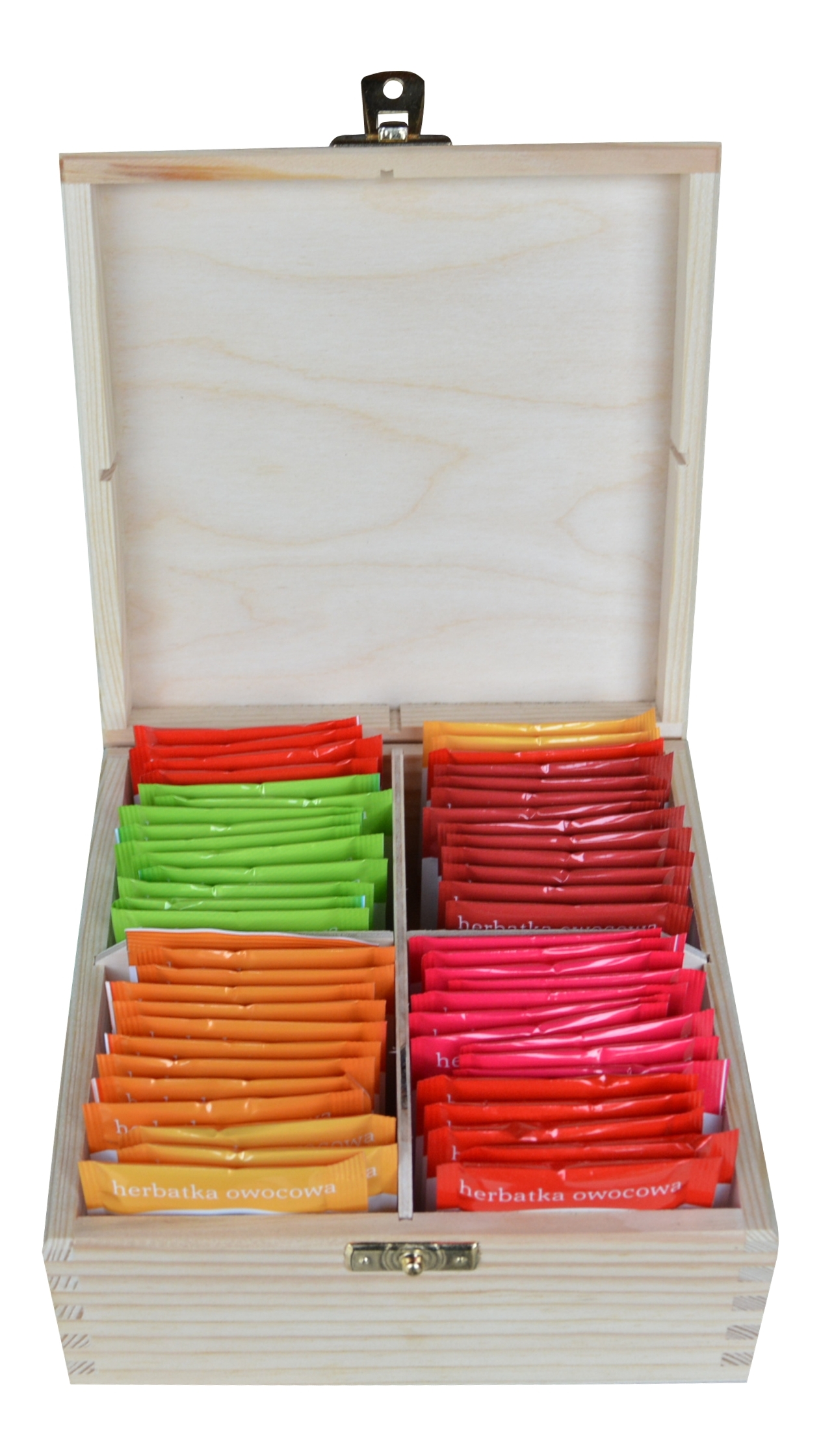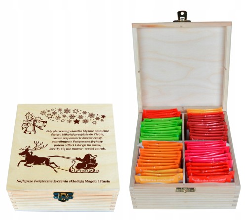 CUDOWNE, DREWNIANE PUDEŁKO NA HERBATĘ Z 4 PRZEGRÓDKAMI!
