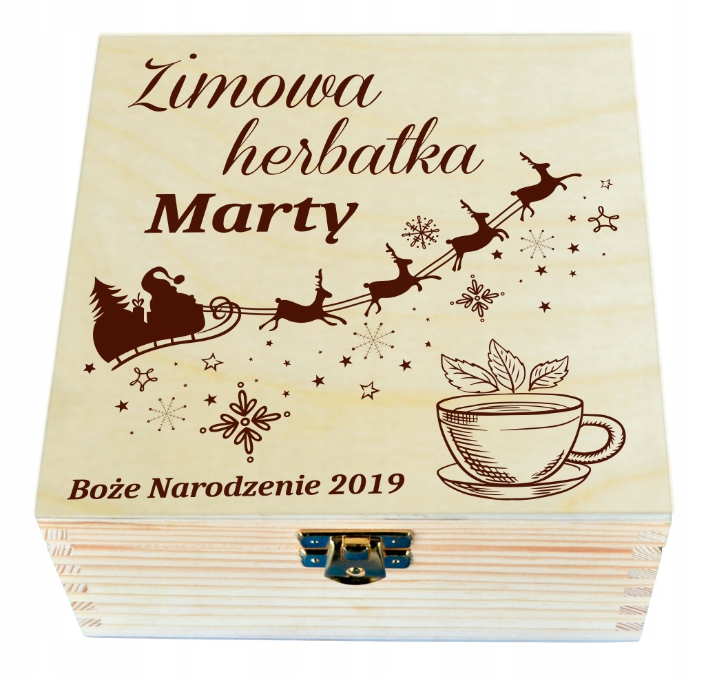 Pudełko na herbatę wykonane jest z solidnego drzewa brzozowego
